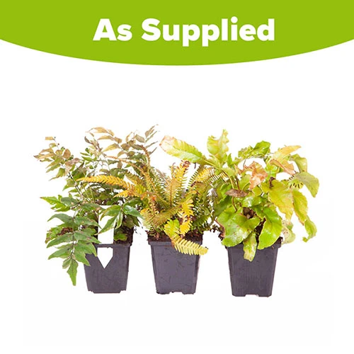 This collection includes one each of 3 named ferns (varieties may vary depending on seasonal availability).