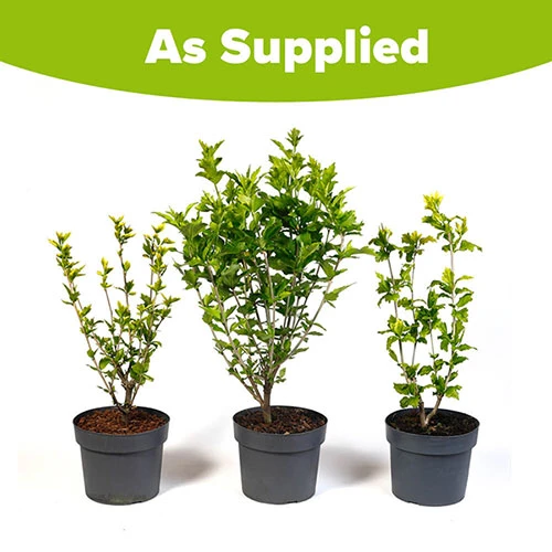 However, with the syriacus Hybrids, nothing could be further from the truth. They are very hardy indeed down to -10C, and flower their socks off here in British gardens too. This fabulous collection of 3 colours is the perfect starting point too – great value and great quality plants.