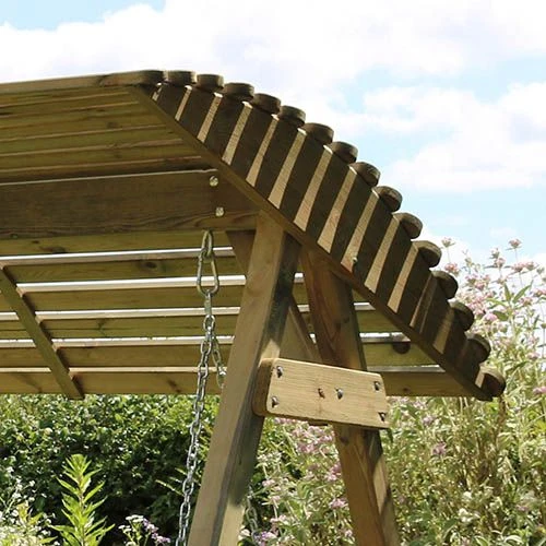 The Miami Three Seater Swing is ergonomically designed for comfort and comes complete with wooden canopy, offering ultimate sheltered relaxation for up to three adults.